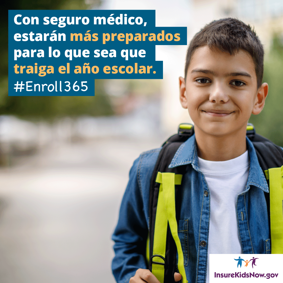 Durante el año escolar, hay numerosas formas de informar a los padres y cuidadores que sus niños y adolescentes pueden reunir los requisitos para obtener un seguro médico gratuito o de bajo costo a través de Medicaid y del Programa de Seguro Médico para Niños (CHIP, por sus siglas en inglés). Con un seguro médico, pueden vacunarse, hacerse controles y exámenes de la vista, visitar al odontólogo y recibir otros cuidados que puedan necesitar para participar plenamente en las actividades escolares, extracurriculares y de verano. Las escuelas son excelentes asociados para alcanzar e inscribir a familias con hijos elegibles para Medicaid y el Programa de Seguro Médico para Niños.